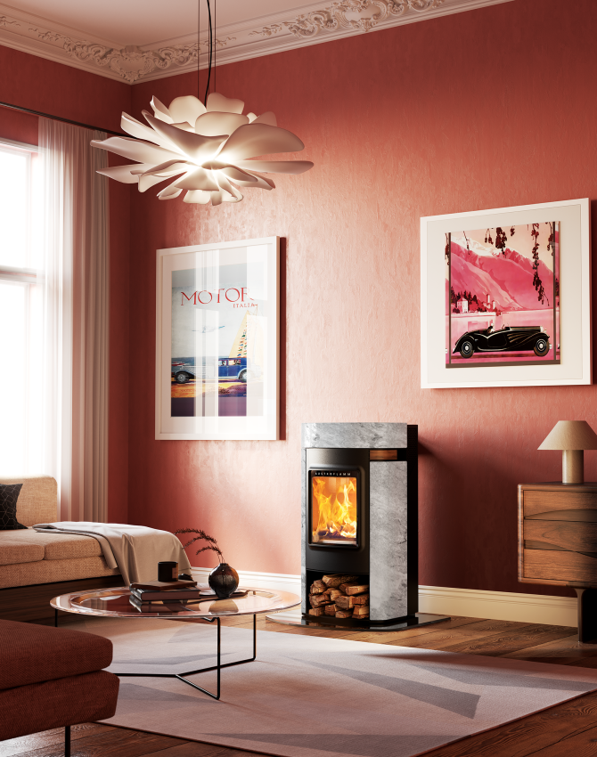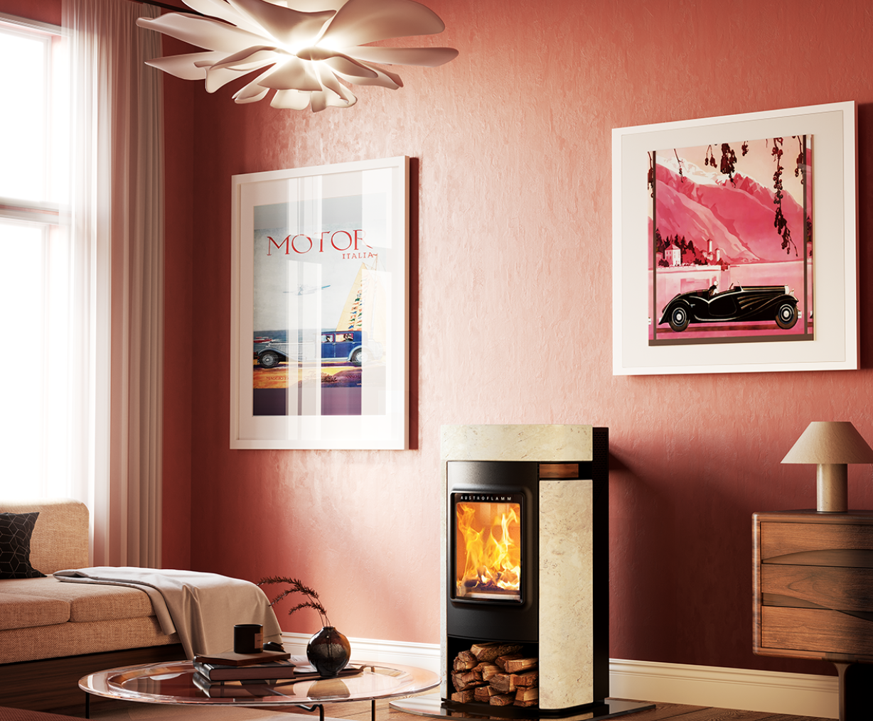 120 kg de revêtement en pierre naturelle, des dimensions compactes, une porte en fonte massive, une grande vitre ouverte sur la flamme et un habillage de la chambre de combustion en Keramott blanche de haute qualité font de notre nouveau modèle un vrai spécialiste de l'économie d'énergie!