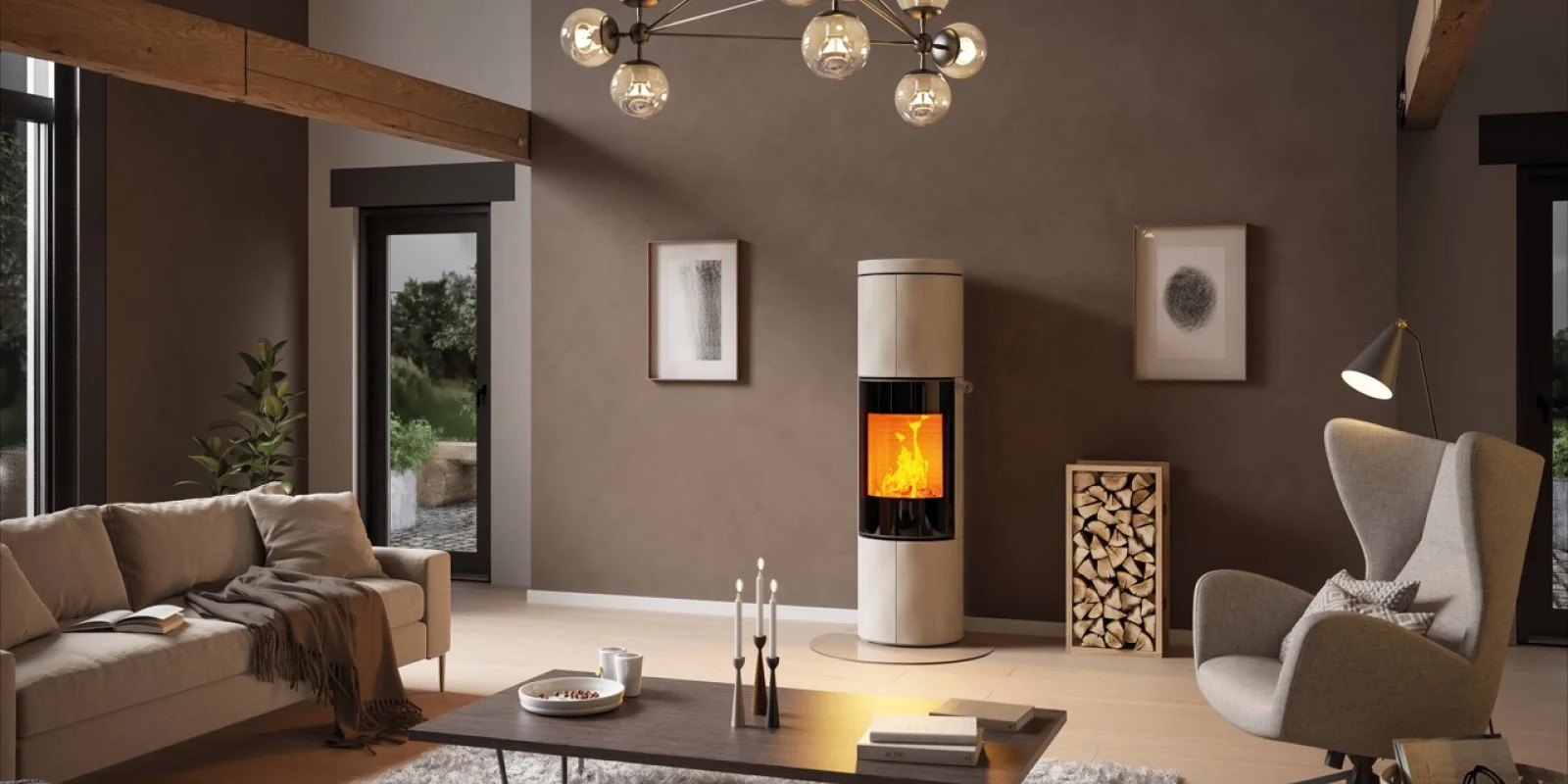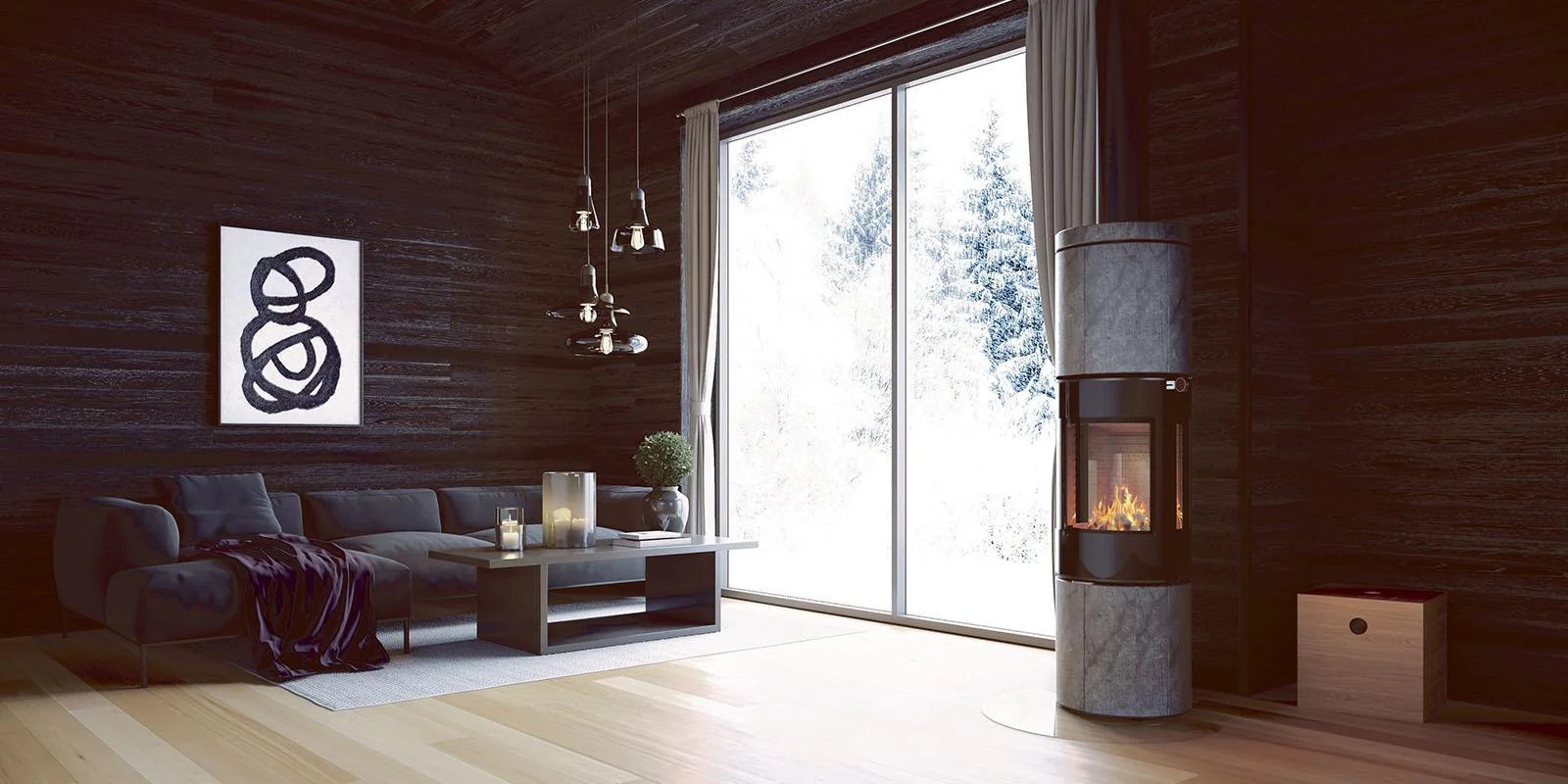 Juno L est un poêle en pierre ollaire, un matériau qui met magnifiquement le feu en valeur.