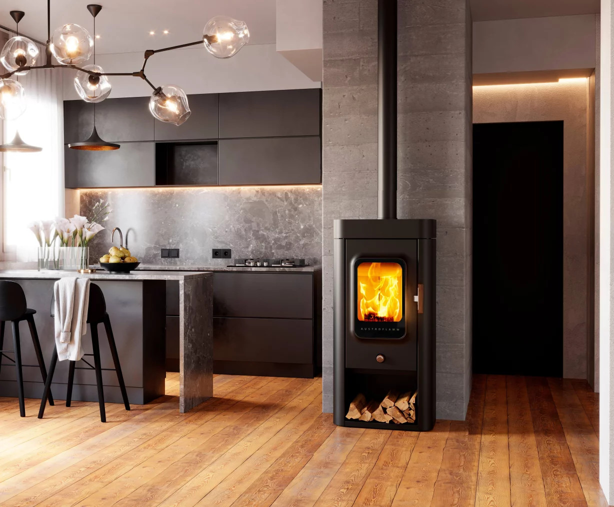 Ce poêle à bois séduit par sa forme étroite et arrondie et crée une ambiance conviviale sans s’imposer. Le bûcher intégré confère à cette petite merveille son charme rustique tout en économisant beaucoup de place !