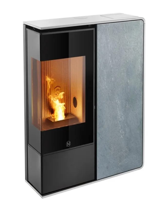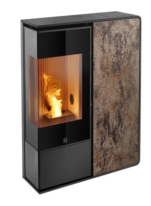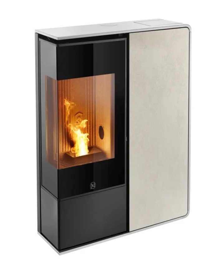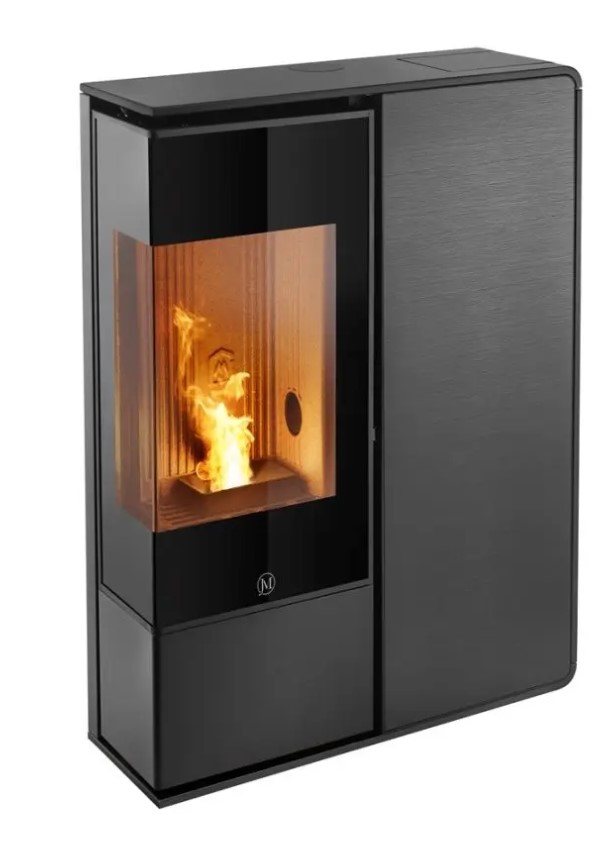 I-Dea 2 angle présente toute la technologie avancée de jolly Mec. avec sa faible profondeur de seulement 27 cm il se prête tout particulièrement à se placer où que ce soit. le style moderne, l’absence de grilles traditionnelles de ventilation apparentes et le design recherché sont complétés par l’élégance de la vitre d’angle qui confère une ample vision de la flamme. Le poêle est fourni “toute option”: il inclut de série l’humidificateur extractible et le système wifi qui permet de gérer le poêle et son fonctionnement à distance. Vous pourrez choisir le profilé en acier dans les coloris noir, blanc ou tourterelle et le panneau frontal, toujours au choix, entre le grès ivoire, couleur rouille, ou effet bois, la pierre ollaire sablée, la vitre noire rayée, l’acier noir.