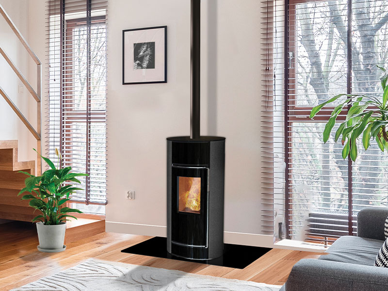 Le po\u00eale rond HOBEN Osmose est un po\u00eale \u00e0 granul\u00e9s moderne au design \u00e9pur\u00e9.\u00a0